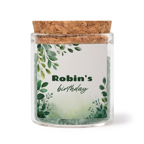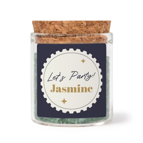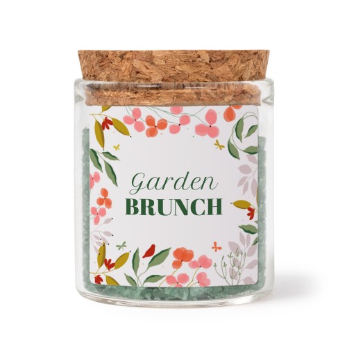 Wählen Sie Ihr Design für Mini-Glas mit quadratischem Sticker u. grünem Badesalz - 12 Stk.