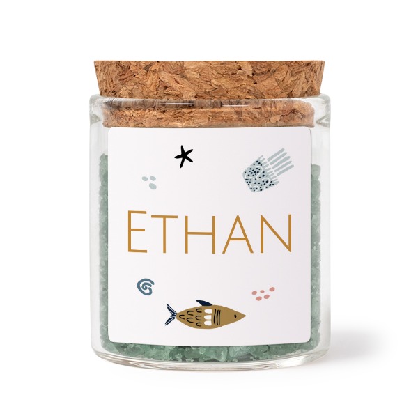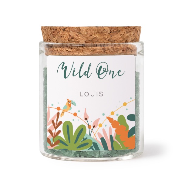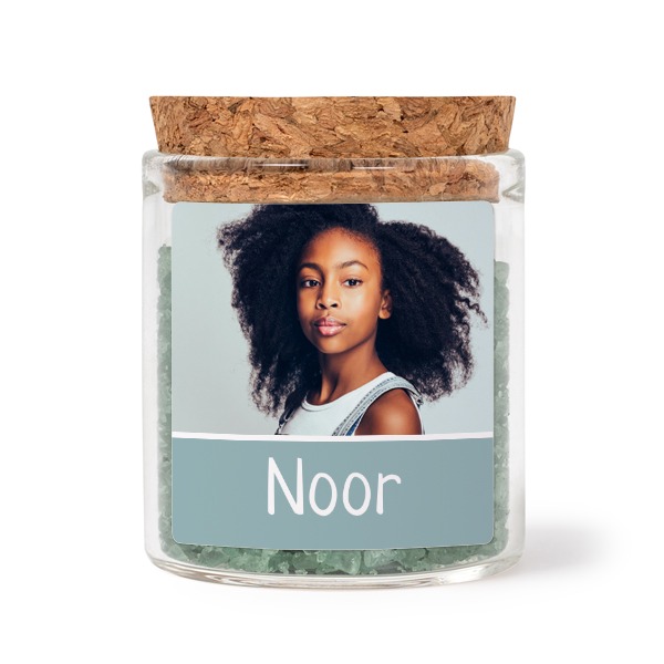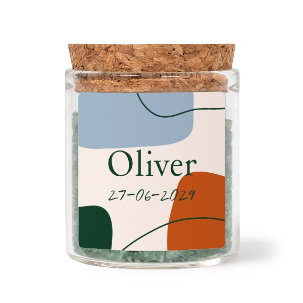 Wählen Sie Ihr Design für Mini-Glas mit quadratischem Sticker u. grünem Badesalz - 12 Stk.