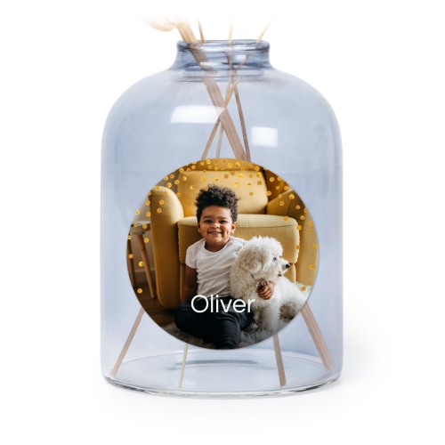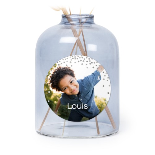 Wählen Sie Ihr Design für Blaue Mini-Glasvase mit runden Aufkleber - 6 Stk.
