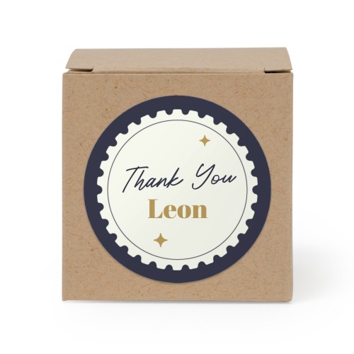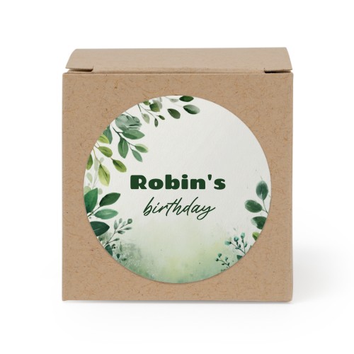Wählen Sie Ihr Design für Partybox Braunes Kraftpapier mit Sticker rund (24er Set)