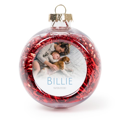 Wählen Sie Ihr Design für Set Weihnachtskugeln personalisiert mit Foto - 2 Stk. (Transparent, Lametta Rot)